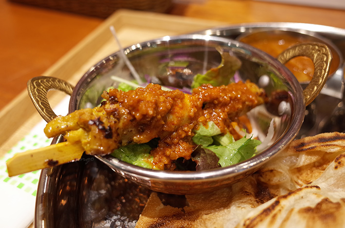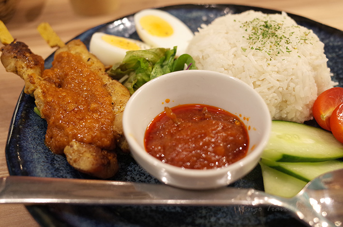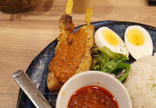 サテー(sate)は、インドネシア発祥の料理で、マレーシアでもよく食べられているそうです。鶏肉やヤギ肉を香辛料たっぷりのタレに漬け込んで、串に刺して焼いたもの。原則炭火焼とのことで、焼き鳥みたいですね。今回のお肉は多分鶏肉だと思いますが、柔らかくてスパイシーで美味しかったです。